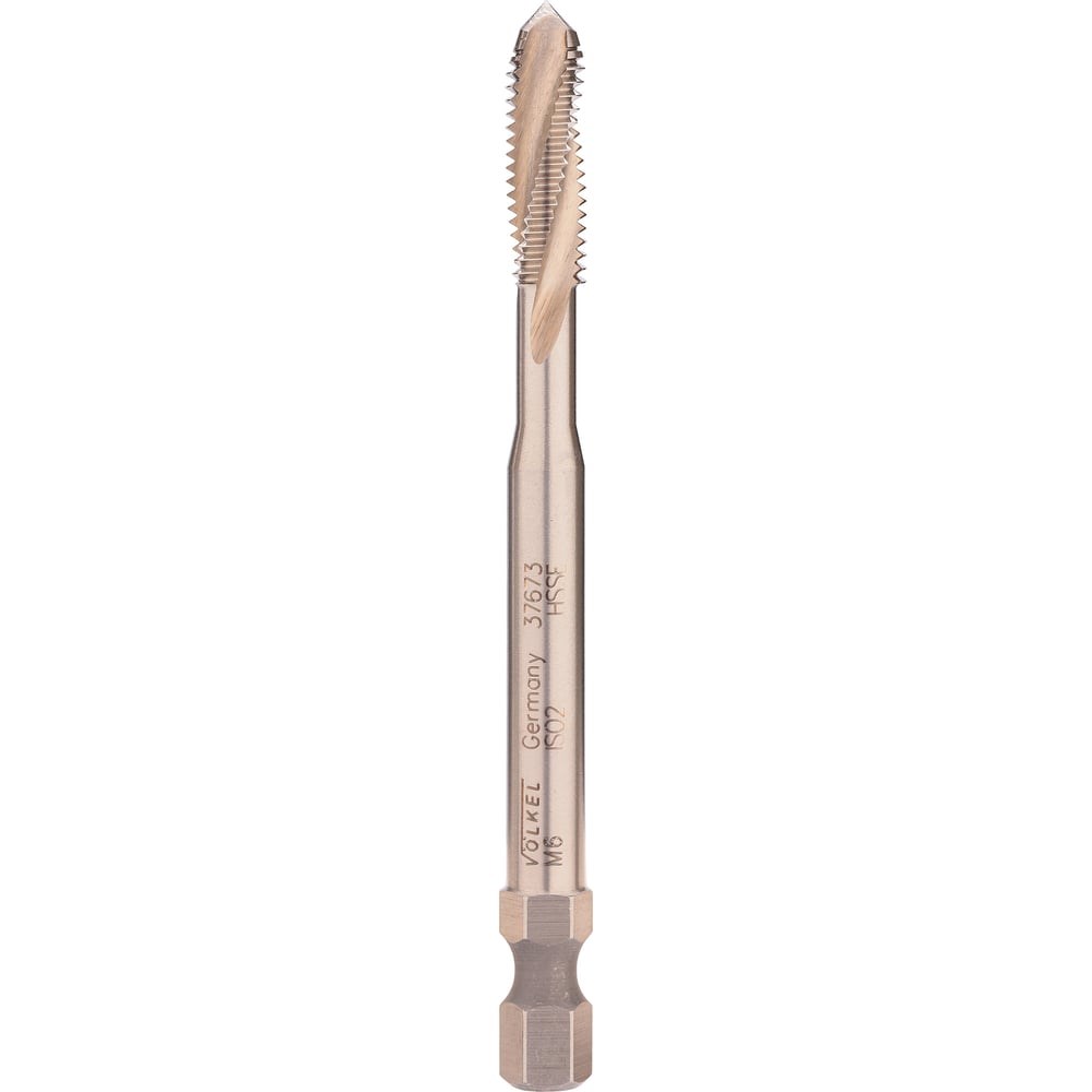 Машинный метчик с винтовой канавкой предназначен для создания внутренней резьбы в различных материалах. Изготовлен из высококачественной быстрорежущей стали HSSE, которая гарантирует прочность и износостойкость. Метчик имеет 6-гранный хвостовик 1/4", что позволяет использовать в качестве держателя дрель-шуруповерт, а так же стандартные магнитные держатели для бит. Спиральная канавка с углом наклона 15° обеспечивает оптимальное стружкоудаление. Инструмент подходит для обработки заготовок, выполненных из легированной или нержавеющей стали, чугуна, алюминия, меди, бронзы, цинка, с пределом прочности до 900MPa.