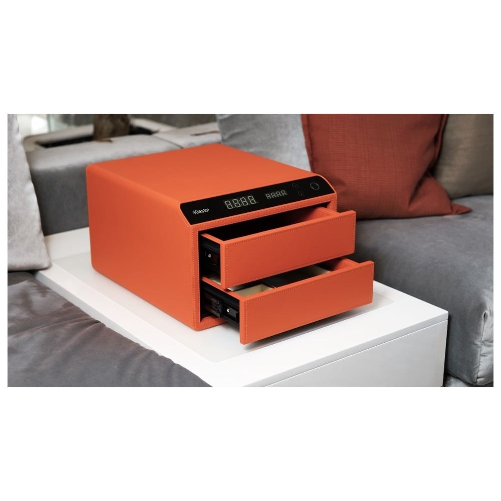 Сейф-шкатулка для ювелирных украшений - идеальное решение для хранения и драгоценностей. Сейф выполнен из металла, обтянутого высококачественной экокожей, что придает ему элегантный и изысканный вид. Сейф оснащен биометрическим замком, который открывается с помощью сканирования отпечатка пальца. Вы можете записать до 100 отпечатков в память устройства. Внутри сейфа-шкатулки есть съемный лоток для размещения ювелирных украшений. Лоток имеет мягкое внутреннее наполнение, которое обеспечивает дополнительную защиту украшений от царапин и повреждений. Сейф работает от встроенного аккумулятора, что обеспечивает бесперебойную работу и удобство использования. Встроенная литиевая батарея легко заряжается от любой зарядки для смартфонов или с помощью внешнего аккумулятора с разъемом типа USB TYPE-C. Сейф-шкатулку вы можете прикрепить к полу или стене используя заранее подготовленные отверстия для крепления. Для экстренного открывания предусмотрен ключ. В верхней секции сейфа-шкатулки имеется элегантная подсветка внутреннего пространства для удобства использования при недостатке освещения.