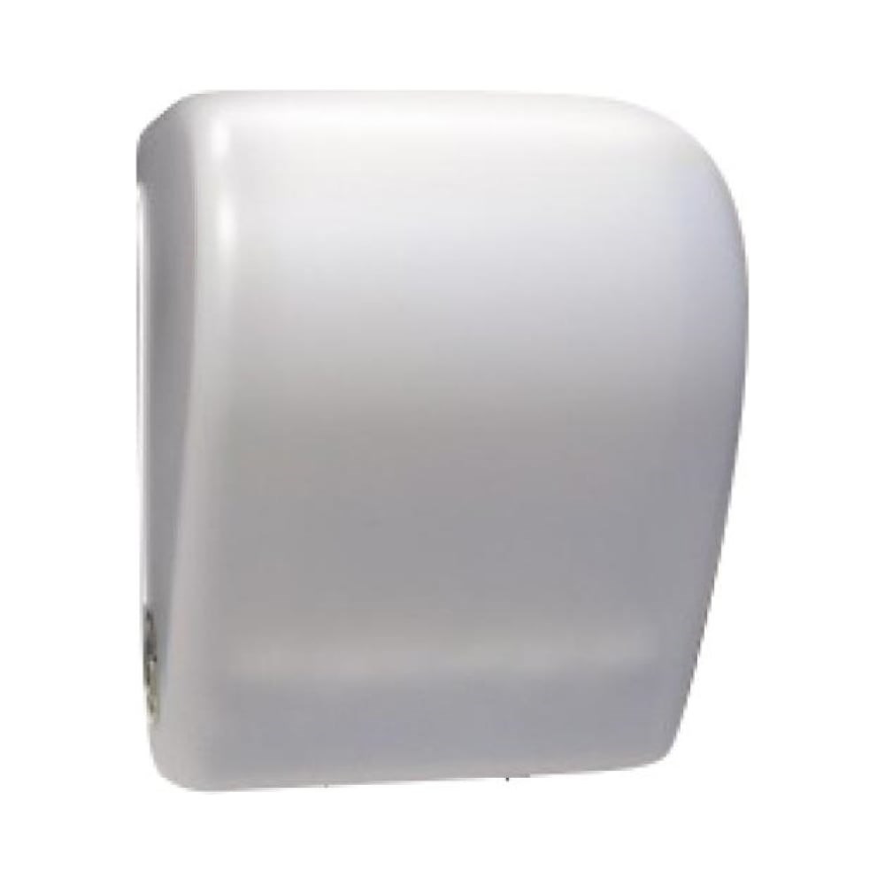 Настенный диспенсер для бумажных полотенец. Фронтальная загрузка. Изготовлен из белого ABS-пластика. Ручной выпуск. Расходный материал: максимальный рулон Ø210 x 197-210 мм.