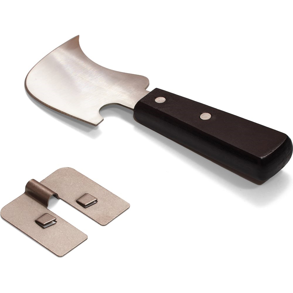 Нож в форме полумесяца - универсальный инструмент для сварки листового пластика, пленки, линолеума феном. Предназначен для резки всевозможных пластмасс и пластиков, линолеума, таркета, мембран; срезки остатков сварочного шнура при укладке коммерческого линолеума и ПВХ-покрытий, а также для всех видов работ, связанных со сваркой линолеума, геомембран, тентов из термопластов горячим воздухом.Лезвие из высококачественной сталиДолговечность и устойчивость к различным нагрузкам