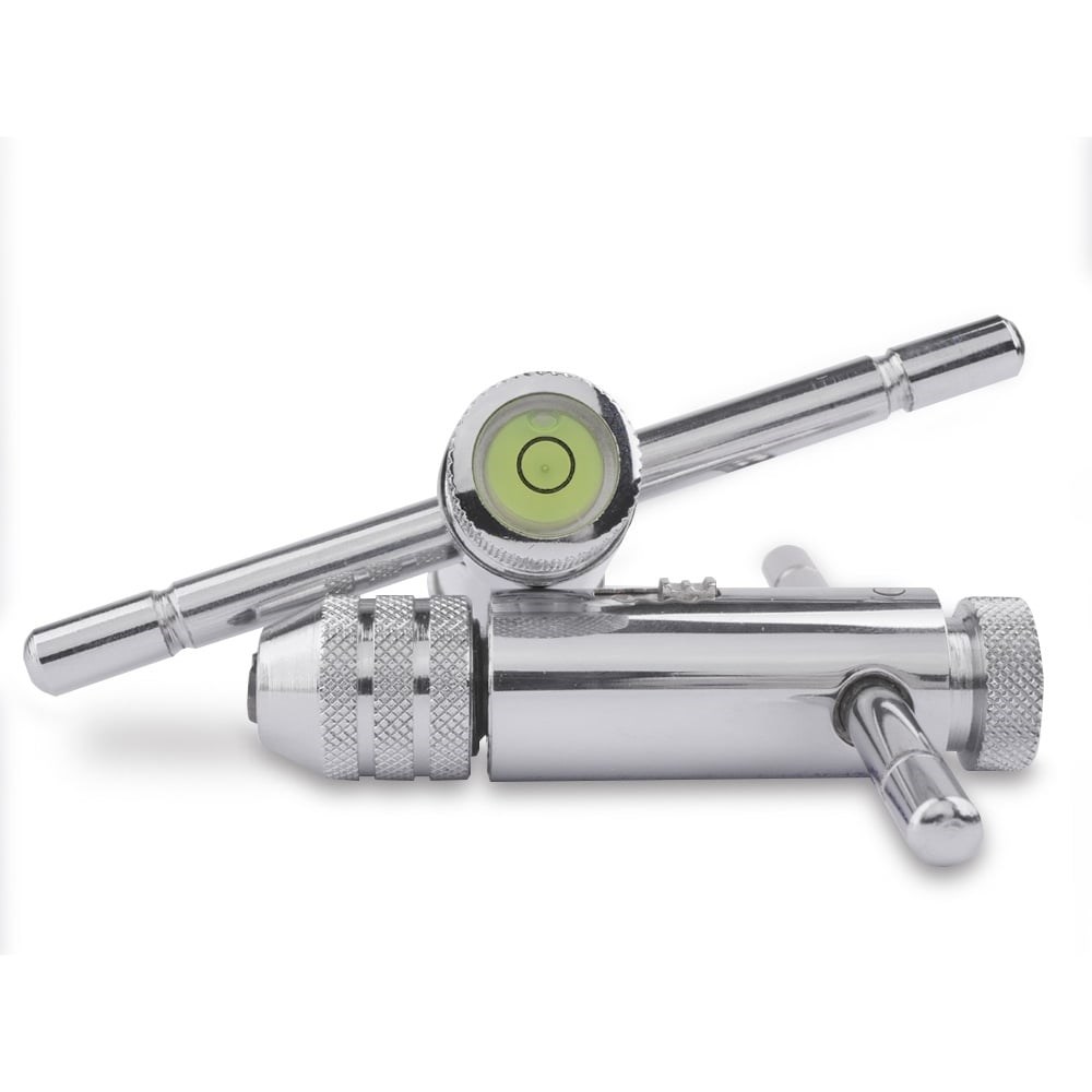 Метчикодержатель с храповым механизмом и реверсом GSR упрощает процесс нарезания резьбы за счет использования специального трещоточного механизма и Т-образной рукоятки в труднодоступных местах и ограниченном пространстве. Метчикодержатель оснащен уровнем (глазком), который позволяет начать нарезать резьбу строго перпендикулярно. Инструмент позволяет работать более качественно нарезать резьбу.
