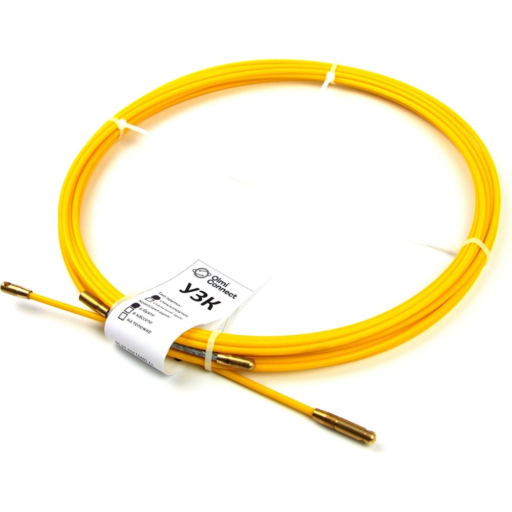 Протяжка для кабеля мини OlmiOn УЗК d=4,5 мм L=40 м в бухте, желтый СП-Б-4,5/40 (устройство для закладки кабеля) в бухте - это самое простое, бюджетное, но при этом качественное и надёжное решение проблемы протяжки кабеля в металлорукава, трубы, короба и каналы при проведении монтажных работ по прокладке проводки для установки видеонаблюдения, систем контроля доступа, домофонов, охранной сигнализации, а также линий связи (интернет, телефон) в офисах, жилых и промышленных помещениях. Устройство представляет собой стеклопластиковый пруток, который снаружи покрыт специальной защитной оболочкой, выполненной из износостойкого полиэтилена высокой плотности. С одной стороны УЗК находится наконечник из латуни, на который в каждом конкретном случае, в зависимости от условий протяжки, можно накрутить жёсткую или гибкую насадку (последняя наиболее удобна для использования в каналах уже наполненных большим количеством кабелей или с высоким числом изгибов), а с другой стороны жёстко закреплён наконечник (также из латуни) для фиксации кабеля, который необходимо протянуть. В комплекте с мини УЗК жёсткая и гибкая насадки. Минимальный радиус изгиба протяжки: 25 мм-30 мм. Общий диаметр прутка: 4,5 мм. Поставляются в двух цветовых вариантах на выбор: Желтые, Красные