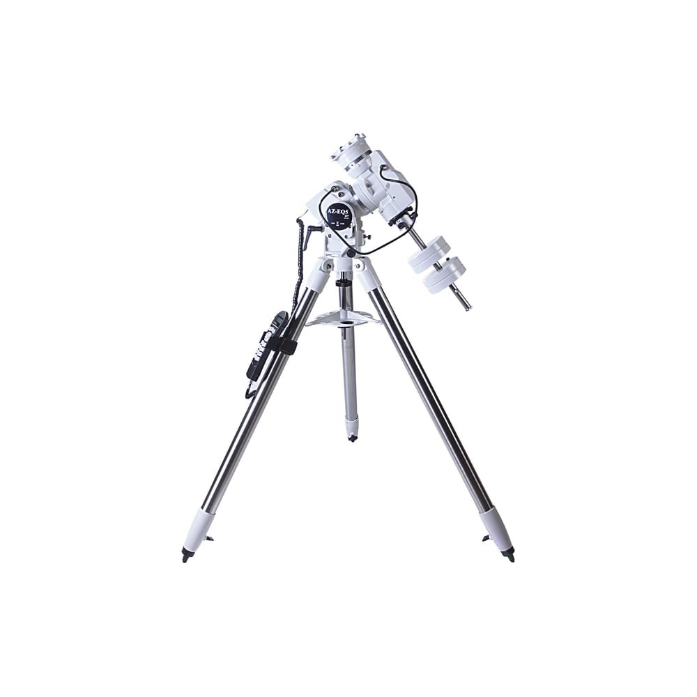 Монтировка Sky-Watcher AZ-EQ5 SynScan GOTO со стальной треногой NEQ5 68743 – универсальная монтировка нового поколения для наблюдения в азимутальном и экваториальном режимах, оборудованная системой автоматического наведения SynScan. Модель оснащена гибридными шаговыми приводами на обеих осях, которые обеспечивают плавный поворот монтировки и высокую скорость наведения на объекты (до 4.2 градусов в секунду). При визуальных наблюдениях оптическая труба устанавливается в азимутальном режиме, а для астрофотосъемки телескоп необходимо перевести в экваториальный режим. На корпусе монтировки предусмотрены три порта: порт стандарта ST-4 для автогида (автогид в комплект не входит), порт стандарта DSLR для управления спуском затвора цифровых фотокамер и USB-порт для подключения к компьютеру.