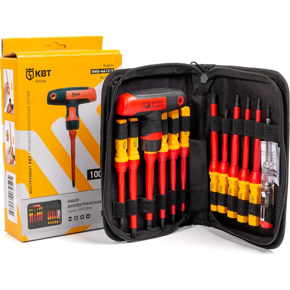 Набор диэлектрических отверток КВТ Профи НИО-4412-Т 87128 предназначен для работ с резьбовыми соединениями в процессе электромонтажных работ под напряжением до 1000 В. Стержни бит выполнены из качественной хромованадиевой стали, благодаря чему отличаются надежностью и долговечностью. Вороненые намагниченные наконечники надежно удерживают крепеж. Материал изоляции бит: полипропилен. На каждой бите нанесена маркировка типоразмера для удобства поиска. Двухкомпонентная Т-образная рукоятка с мягкими вставками из термопластрезины обеспечивает комфортное использование. Патентованный пружинный механизм фиксации биты в рукоятке гарантирует надежность и удобство работы. Прочная сумка на молнии служит для удобного хранения и транспортировки инструмента.