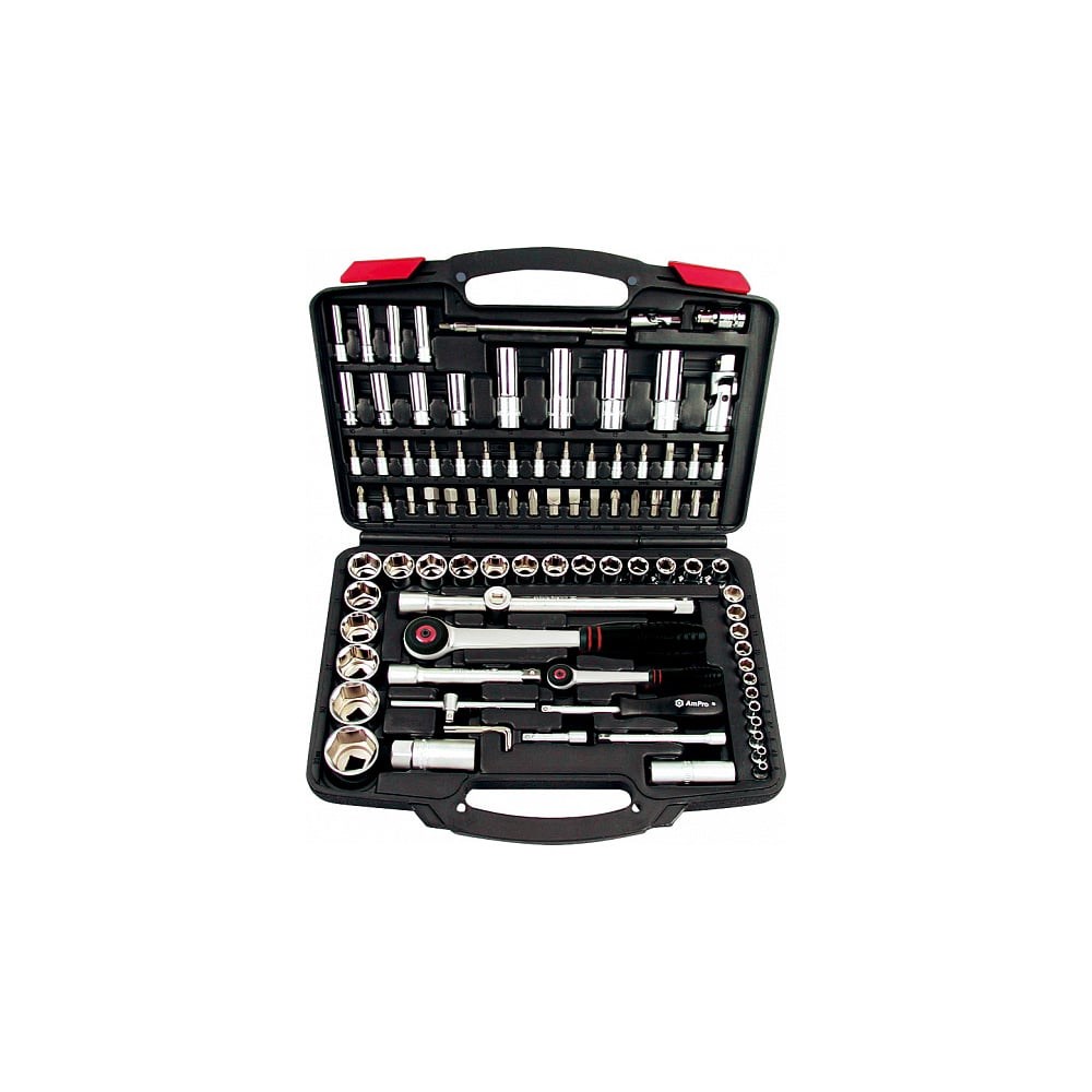 Набор головок и аксессуаров AmPro 1/2 и 1/4, 94 предмета T45486 представляет собой инструмент, необходимый для ремонта автомобиля. Все элементы выполнены из высокопрочной стали. Дополнительно имеется антикоррозийная защита. Подходит для использования в гараже, автомастерской - удобен для бытового и профессионального применения.