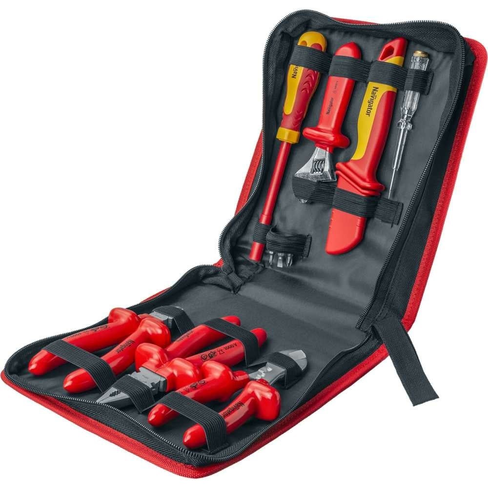 Набор инструмента Navigator nht-ind06-h12 диэлектрические, 12 шт. 93435 предназначен для проведения широкого спектра профессиональных электротехнических и электромонтажных работ в установках с напряжением до 1000 В. Пассатижи, бокорезы и длинногубцы изготовлены из прочной кованой стали, закалены, имеют защитное покрытие от коррозии. Для работ под напряжением до 1000 В. Биты изготовлены из хром-ванадиевой стали, закалены и намагничены. Удобные диэлектрические рукоятки обеспечивают надежный комфортный хват. Кофр из прочного синтетического водоотталкивающего материала обеспечивает безопасное хранение и удобную транспортировку инструмента.