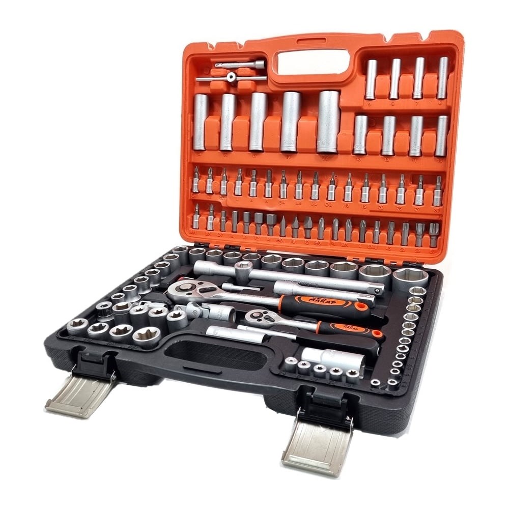 Набор инструментов Дед Макар 108 предметов МК108-063 00-00000198 можно использовать при работе с различными типами крепежа. Для этого в комплекте есть биты и головки различного типа. В качестве вспомогательного снаряжения имеется также несколько карданных шарниров и других компонентов. Это помогает работать со сложным крепежом, а также болтами, которые достаточно заглублены в механизмах. Есть стандартные и глубокие головки, при помощи которых можно работать с длинными шпильками. Биты в комплекте поставляются под 5/16 и 1/4 - это позволяет использовать их с другими типовыми трещотками или воротками. Прочный пластиковый кейс удобен для транспортировки и хранения.