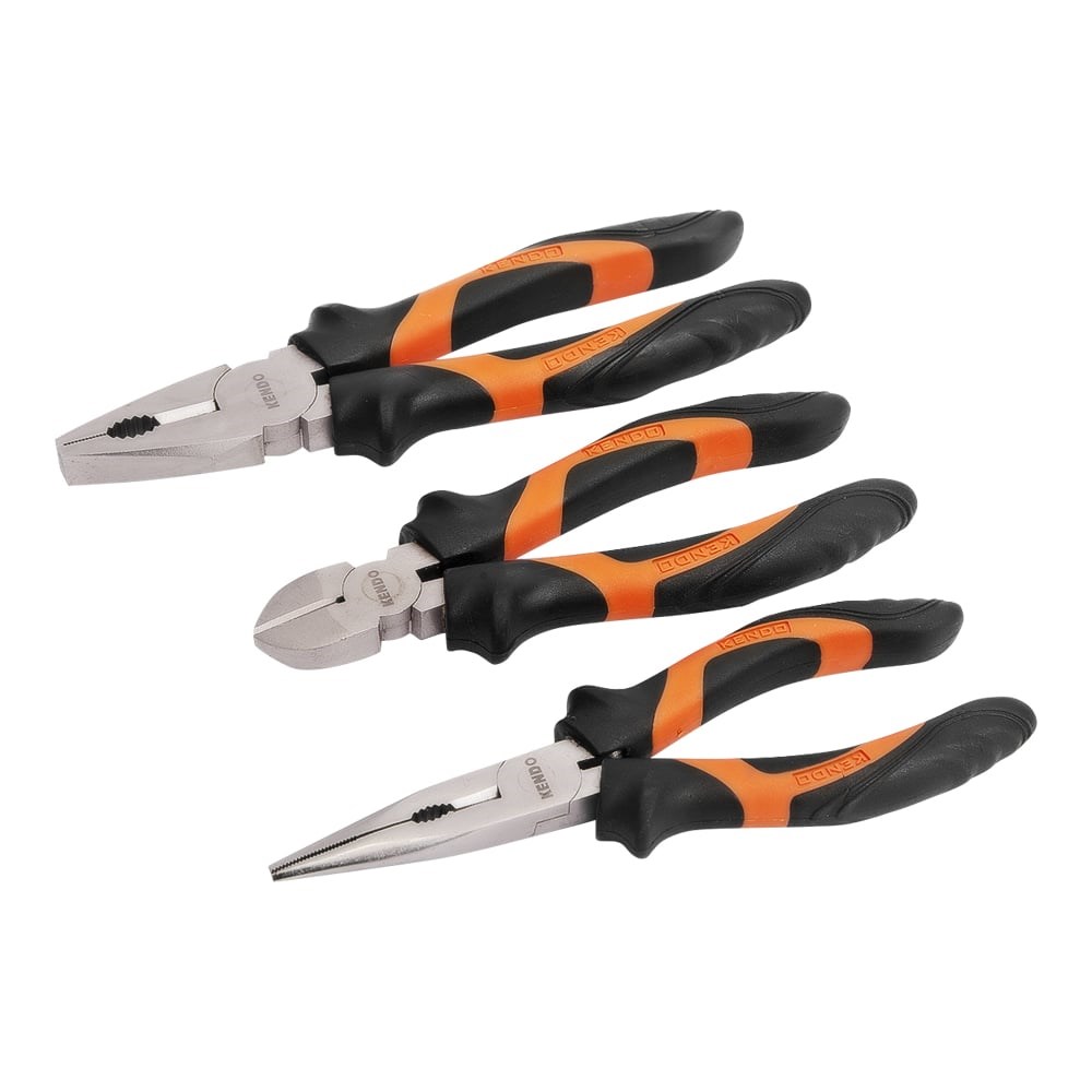 Набор инструментов KENDO 3 предмета 85101 включает в себя плоскогубцы, длинногубцы и бокорезы. Рукоятки с противоскользящим покрытием обеспечивают максимальный контроль и комфорт во время работы. Рабочая поверхность выполнена из прочной стали, что увеличивает срок службы инструмента.