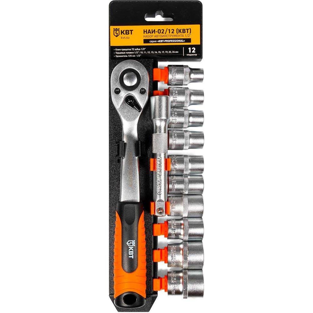 Набор инструментов КВТ НАИ-02/12 78669 используется для проведения слесарных, монтажных, демонтажных и авторемонтных работ. Присоединительный размер в 1/2 дюйма позволяет прилагать наибольшие усилия во время монтажа резьбового соединения. Набор отличается долгим сроком службы.