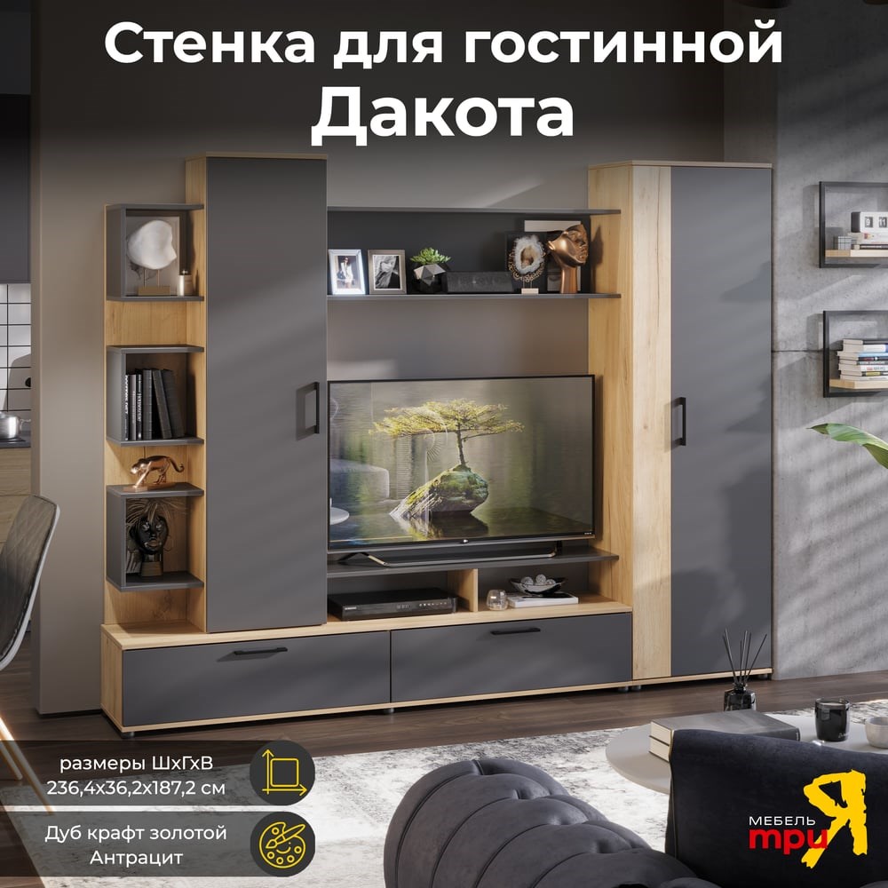 Набор мебели для общей комнаты ТриЯ Дакота дуб крафт золотой/антрацит