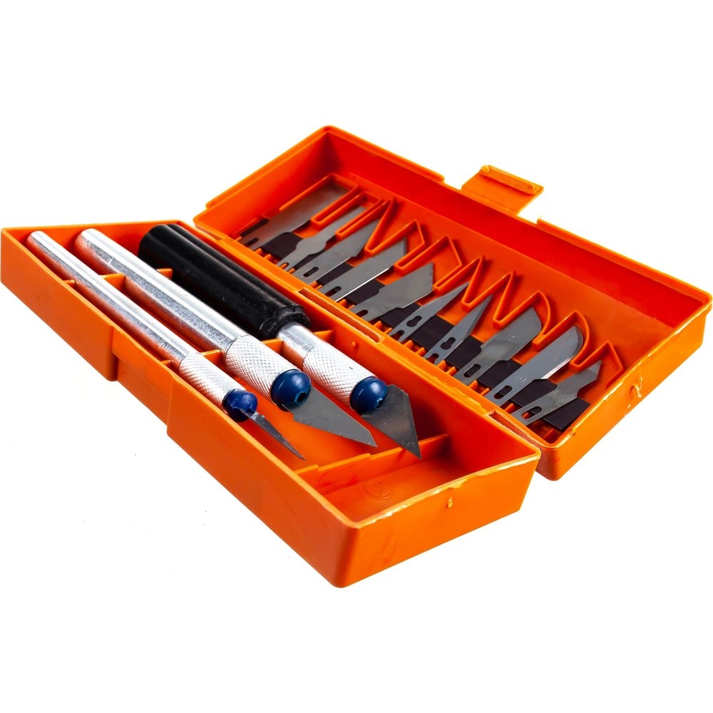 Набор ножей для резьбы по дереву, 13 лезвий РемоКолор 40-3-916 включает в себя большое количество различных по толщине и размерам ножей, которые можно использовать для резки древесины любой плотности. Имеются рукоятки, рассчитанные на различную нагрузку.