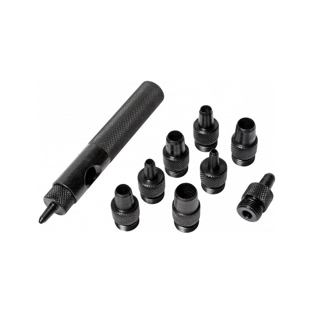 Набор пробойников МАСТАК 109-80009 предназначен для изготовления отверстий в листовых материалах. Изготовлен из инструментальной стали с защитным покрытием. Разработан для профессионального использования в автосервисах и на СТО.
