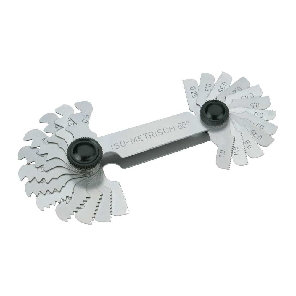 Набор резьбовых шаблонов 52шт NORGAU 045142001 выполнен из закаленной пружинной стали. Применяется для измерения шага метрических и дюймовых резьб. Фрезерованные зубчики имеют высокую прочность. Корпус с никелевым покрытием. Шаблоны закреплены на корпусе при помощи пластиковых винтов.Состав набора:Метрическая 60° : 0,25, 0,30, 0,35, 0,40, 0,45, 0,50, 0,60, 0,70, 0,75, 0,80, 0,90, 1,00, 1,25, 1,50, 1,75, 2,00, 2,50, 3,00, 3,50, 4,00, 4,50, 5,00, 5,50, 6,00Витворт 55⁰ : / 4, 4-1/2, 5, 6, 7, 8, 9, 10, 11, 12, 13, 14, 16, 18, 19, 20, 22, 24, 25, 26, 28, 30, 32, 36, 40, 48, 60, 62 TPI