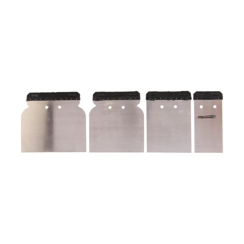 Набор японских стальных шпателей 4 шт. SPARTA 852605 предназначен для проведения финишных работ по нанесению шпаклевочного слоя на поверхности, а также для затирки межплиточных швов. Полотна шпателей выполнены из упругой стали, а ручки из пластмассы.