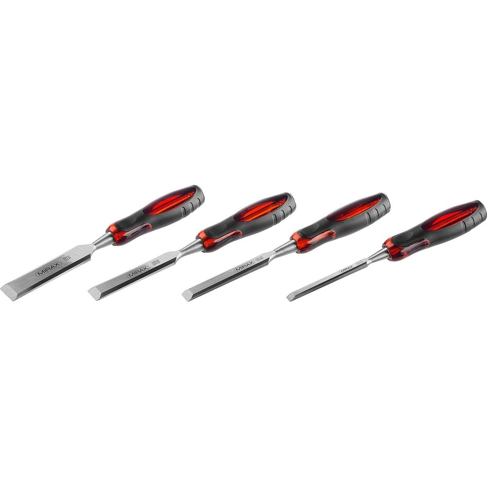Набор стамесок с двухкомпонентной прозрачной рукояткой в блистере MIRAX 4шт 1810-H4 предназначен для работ по дереву. Инструменты с узкой режущей частью подойдут для выполнения рельефной резьбы и узоров, а с широкой частью - для строгания. Стамески применяются для зачистки пазов, изготовления углублений, снятия фасок и т.д.