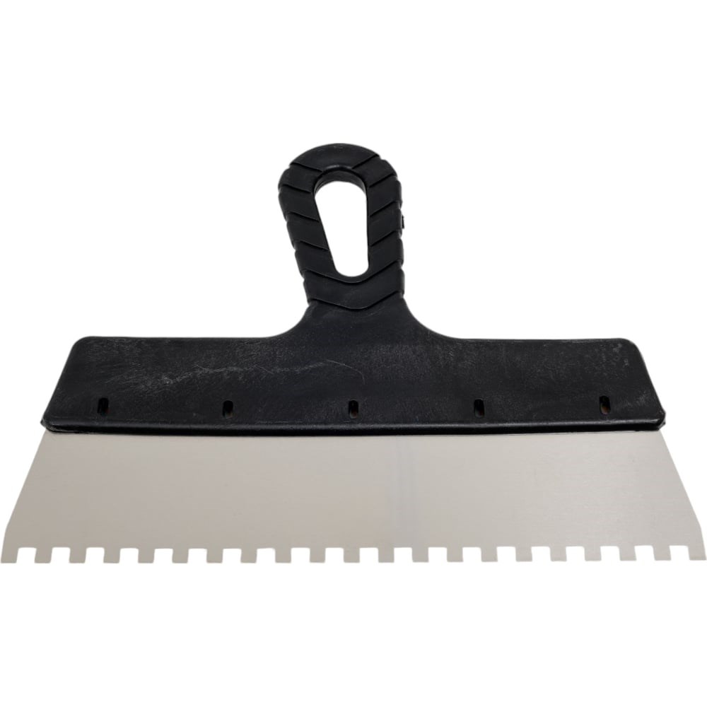Нержавеющий зубчатый шпатель STAYER 250мм, зуб 6х6мм 1009-25-06 используется при проведении малярно-штукатурных работ, в основном для нанесения густого клеевого раствора. Благодаря нержавеющему полотну возможно нанесение водных растворов. Дополнительные характеристики Длина шпателя 250 мм; Размер зубьев 6х6 мм.