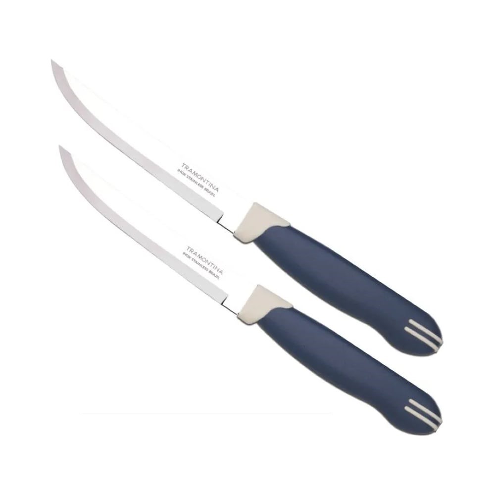 Набор ножей для стейков TRAMONTINA Multicolor 23527/215 предназначен для предварительной подготовки рыбы, птицы, мяса или дичи к кулинарной обработке. Модель позволяет легко отделять сочную мякоть от костей даже в сложных местах и нарезать куски необходимого размера в зависимости от запланированного блюда. Удобная пластиковая рукоять приятна на ощупь и не выскальзывает из ладони во время работы. Набор ножей для стейков создан с применением высококачественных безопасных материалов. Острый, тонкий клинок изготовлен из особого вида стали, сплав отличают высокие антикоррозийные свойства, прочность и жаростойкость. Режущий элемент не требует частой правки или заточки. В комплекте представлено два ножа, которые можно очищать как обычным способом, так и в посудомоечной машине.