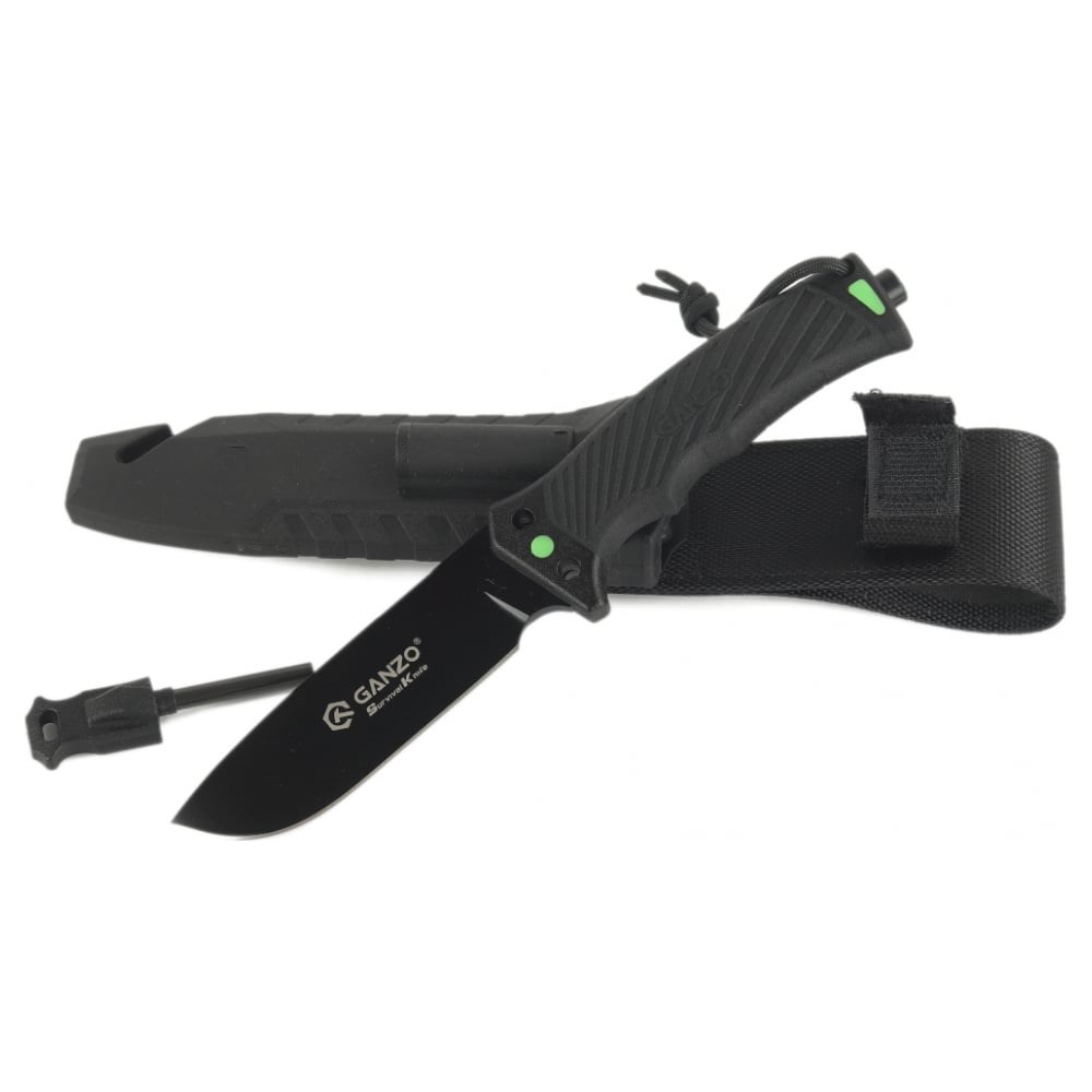 Нож с паракордом Ganzo G8012V2-BK — нескладной клинок для выживания, который выдерживает повышенные нагрузки. Он предназначен для использования в полевых условиях, так как обладает повышенной прочностью клинка и надежностью конструкции. Лезвие изготовлено из высокоуглеродистой стали 8CR13, которая устойчива к появлению коррозионного налета при длительном воздействии влаги и обеспечивает качественный рез. Рукоять изготовлена из ABS-пластика, который превосходит другие виды пластмассы по ряду качеств: он характеризуется высокой ударопрочностью, стойкостью к деформации и невосприимчивостью к жирам, щелочам, углеводородам и другим химическим соединениям. Нож идет в комплекте с фирменными ножнами, которые изготовлены из ударопрочного пластика и нейлона.
