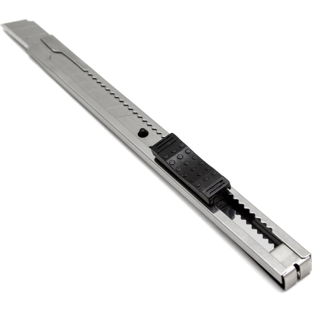 Нож 9 мм VIRA с сегментированным отламывающимся лезвием - Система фиксации лезвия PUSH-LOCK - Металлическая направляющая - Пластиковый прижим Предназначен для разрезания бумаги, картона, тонкого пластика, ткани. Ширина лезвия – 9 мм. Сегментированное лезвие позволяет использовать нож длительное время – при износе заточки достаточно надломить затупившийся сегмент лезвия и перейти к использованию следующего. Система фиксации лезвия Push-lock позволяет одним движением отрегулировать длину лезвия и закрепить его положение. Корпус выполнен из металла, что защищает инструмент от повреждений. Металлическая направляющая из нержавеющей стали обеспечивают надежную фиксацию лезвия в момент использования.