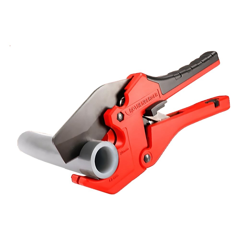 Ножницы Rothenberger РОКАТ 42 Twin Cut для труб 0-42 мм 1000003011 предназначен для резки труб. Ножницы оснащены двумя режимами резки. Трубы малых диаметров ножницы режут за один рабочий проход, а резка труб больших диаметров осуществляется в режиме трещотки, в который ножницы переключаются автоматически. Покрытие ножа из ПТФЭ позволяет легче резать трубы под прямым углом. Двухступенчатая опора для труб уменьшает опасность деформации трубы и прикладываемое усилие. Нескользящие рукоятки обеспечивают надёжный захват при работе. Симметрично расположенный рычаг для возврата обеспечивает удобство работы для левшей и правшей.