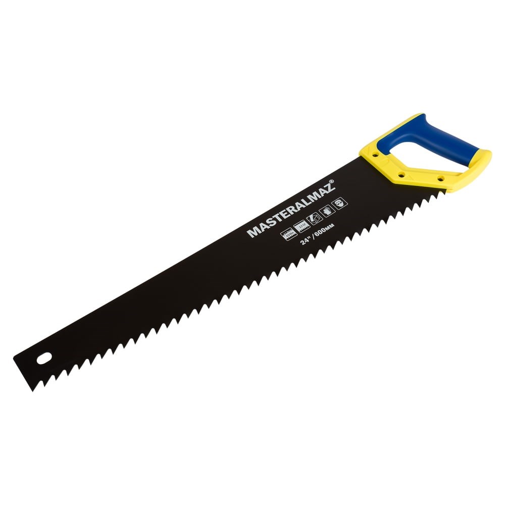 МастерАлмаз Ножовка по бетону с зубьями YG8 600мм 10508007Инструмент для ручной распилки блоков из пенобетона/газабетона. Рукоятка двухкомпонентная выполнена из пластика и резины (ABS+TPR), что не позволяет ей проскальзывать в руке и обеспечивает жесткий хват. Имеет 17 зубьев покрытых карбид вольфрамом, что дает превосходную износостойкость и высокую скорость реза. Эффективный распил достигается за счет определенной формы зуба и размера. Тефлоновое покрытие улучшает скольжение и повышает скорость распила. Толщина полотна -1,5 мм