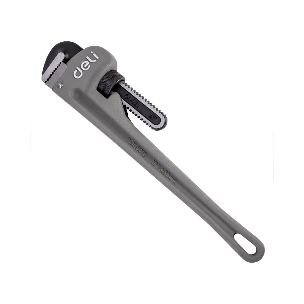 Трубный ключ Стиллсона используется для вращения или фиксации труб и других деталей произвольной формы. Рукоять ключа изготовлена из высокопрочного алюминиевого сплава, что обеспечивает надежность и долговечность при малом весе (на 25% легче стандартных трубных ключей), а губки сделаны из хромомолибденового сплава. Благодаря выгравированной на зажимной головке размерной шкале легко и удобно фиксировать данные диаметра трубы. Инструмент оснащен увеличенным колёсиком винтовой регулировки захвата, что позволяет эффективно контролировать расстояние между губками и точно подбирать размер. У рукоятки предусмотрено специальное отверстие для подвесного хранения. Общая термообработка придаёт инструменту дополнительную твёрдость и прочность.