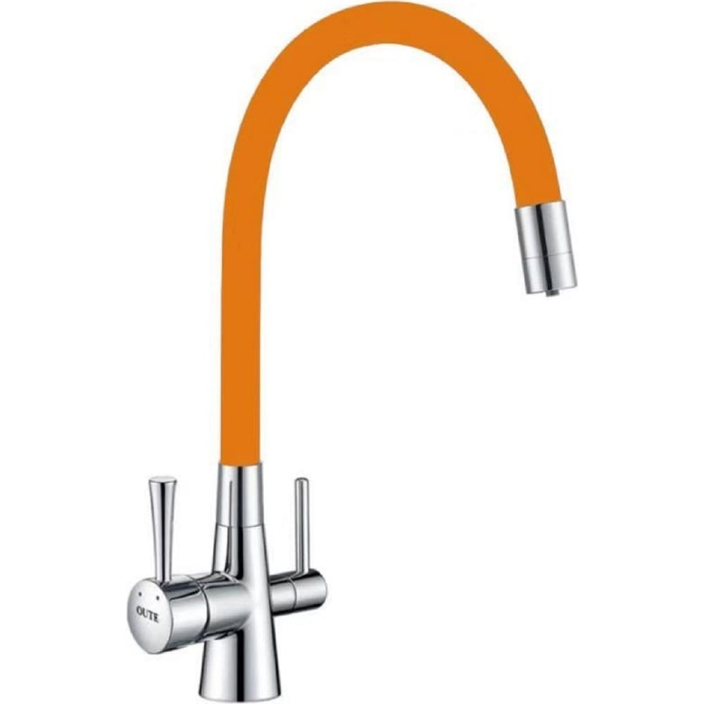 Однорычажный смеситель для кухни OUTE из латуни, хром/оранжевый T60003B-4 - эксклюзивная модель с гибким цветным изливом. Ручка позволяет без лишних усилий настроить напор и оптимальную температуру воды. Гибкий излив значительно расширяет зону использования смесителя. Он изготовлен из термостойкого силикона, который абсолютно безопасен при контакте с водой благодаря отсутствию токсичных компонентов в составе. Излив обладает повышенной износостойкостью и устойчив к перегибам.