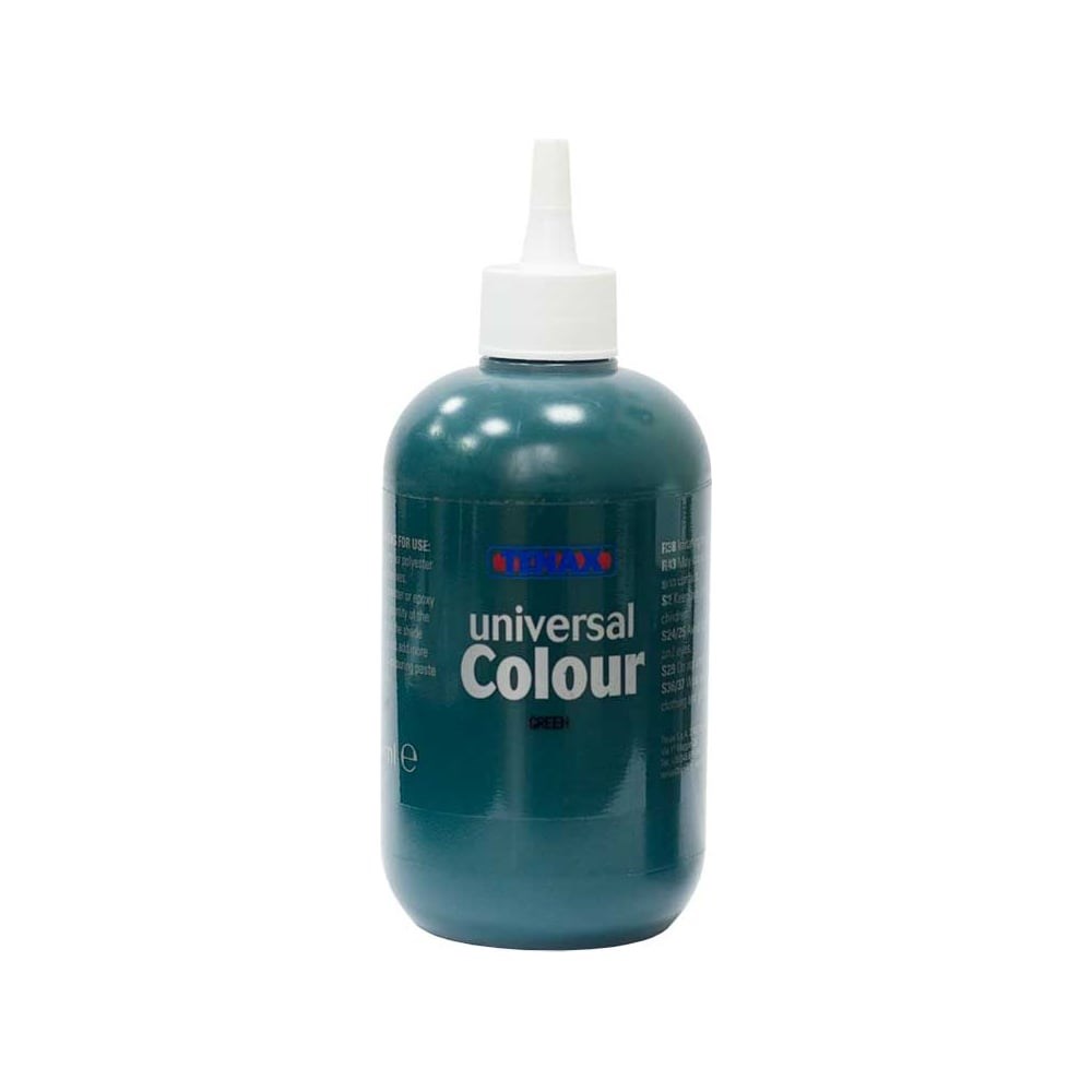 Универсальный краситель для клея Tenax Universal зеленый, пастообразный, 0.3 л 039211216 применяется для изменения цвета всех видов смол, мастик и клея. Пастообразная консистенция легко смешивается с клеем. Дозатор обеспечивает удобное использование и экономичный расход продукта. Дополнительные характеристики: Плотность: 1.3 - 1.6 кг/л; Дозировка: не более 2-3 % от общей массы.