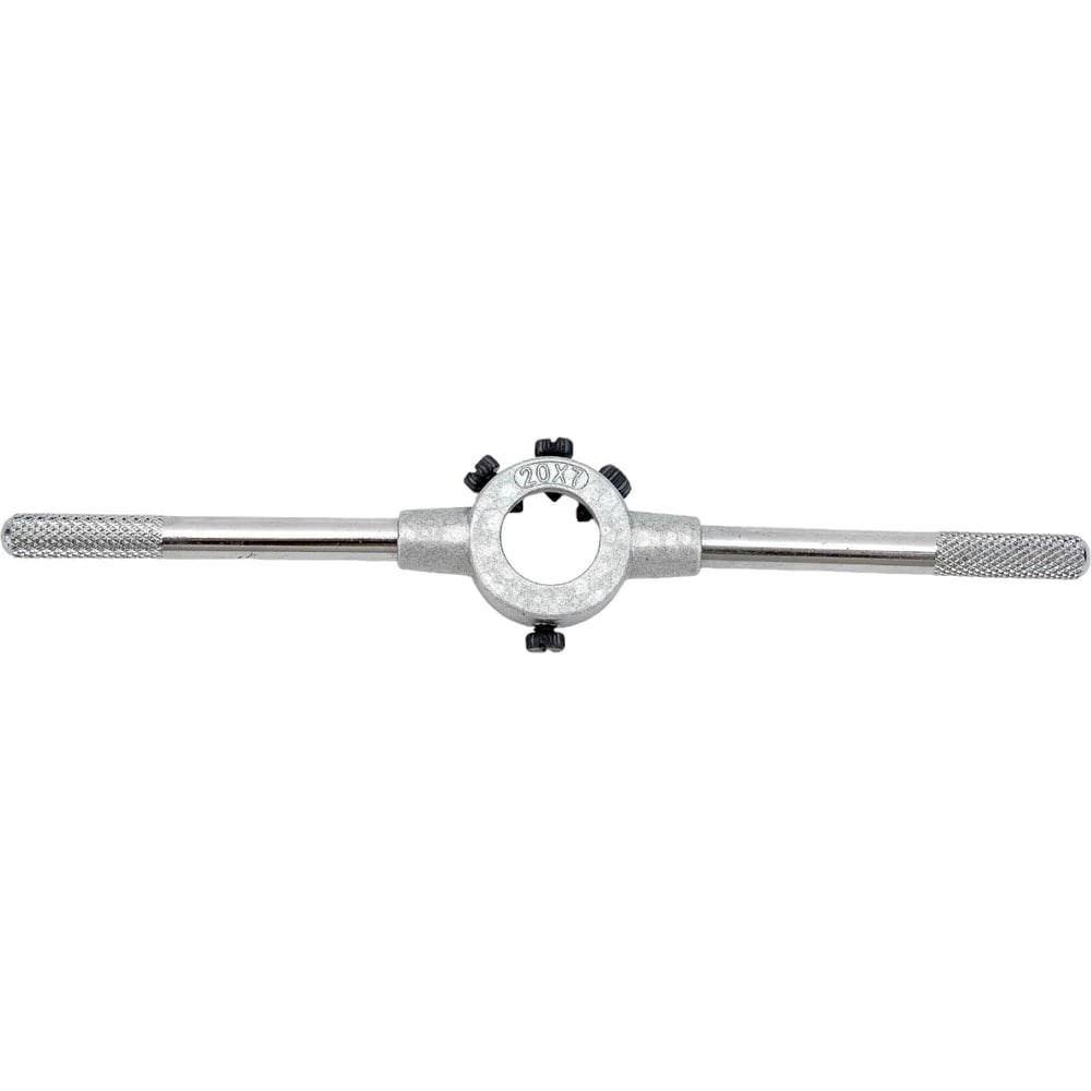 Плашкодержатель Bohrer 20 мм, М3-М6 31920060 предназначен для четкой фиксации плашек в процессе нарезания метрической резьбы. Используется для плашек размером от М3 до М6. Инструмент изготовлен из качественной стали высокой прочности и надежности. Специальное рифленое покрытие на рукоятках обеспечивает удобное удержание инструмента.