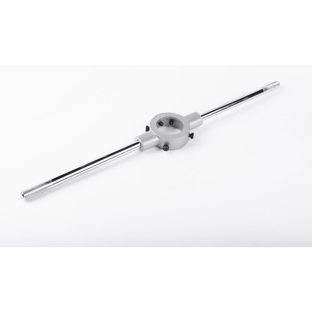 Плашкодержатель ИПК М12-М14, посад. D38x14 мм, L-315 мм plashderM12-M14 представляет собой профессиональный ручной инструмент, который используется для надежной фиксации плашек при нарезании резьбы. Выполнен из качественной инструментальной стали, что обеспечивает прочность и долговечность. Инструмент оснащен рифлением на рукоятках для удобного удержания во время работы.