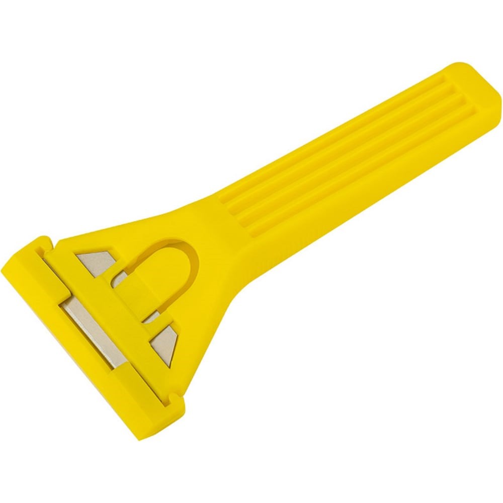 Используется для удаления загрязнений с гладких поверхностей.Тип лезвия: трапециевидное сменноеШирина лезвия: 60 ммДлина: 14 смМатериал: металл, пластмассаЗащитный колпачок обеспечивает защиту от порезов при транспортировке.Внимание ! Цвет может отличаться от фотографии !
