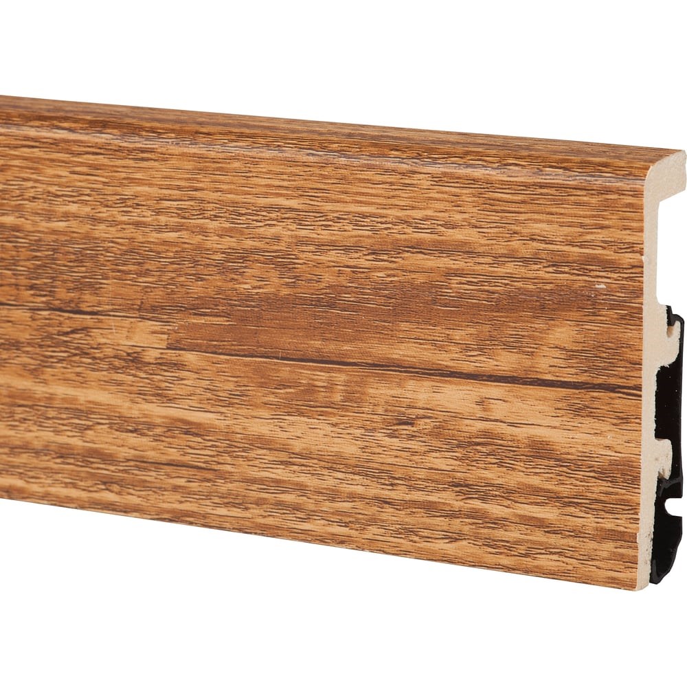 Плинтус Arbiton Integra - плинтус с «древесной» текстурой, визуально ничем не отличается от натурального, массивного или шпонированного. На поверхность наружной панели нанесен рисунок, имитирующий структуру древесины. Плинтус изготовлен из инновационного экологически чистого материала. В состав дюрополимера входит композитный полимер, который под высоким давлением производится из пенополистирола. Материал отличается высокой водостойкостью, не подвержен усадке, устойчив к механическим воздействиям и имеет высокую плотность - на кубический метр в среднем 350-420 кг. Варианты монтажа плинтуса Крепление на шине (монтажной планке) - в комплекте к каждому плинтусу. Инсталляция, демонтаж, повторная установка производятся легко и быстро, что свидетельствует о продуманной конструкции. При монтаже изделия используют различные крепежи, фиксируя его дюбелями, скобами, клейкой лентой. Можно монтировать с помощью клея.