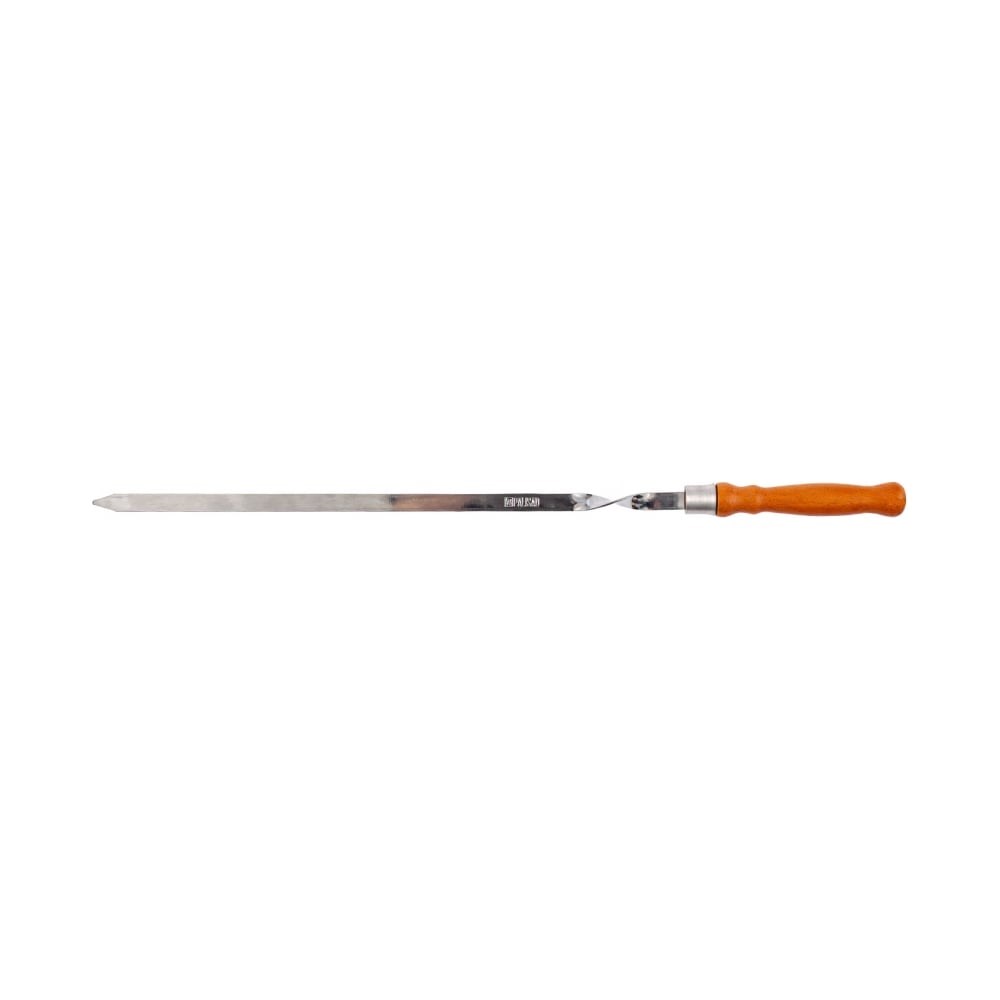 Плоский шампур Palisad Camping 69638, 620 х 14 х 2 мм, с деревянной рукояткой, пригодится для жарки мяса и овощей на мангале. Его можно мыть и чистить, поэтому он рассчитан на многократное использование. Благодаря деревянной рукоятке шампур удобен в использовании: его легко переворачивать и снимать без прихватки, что снижает риск получения ожогов.