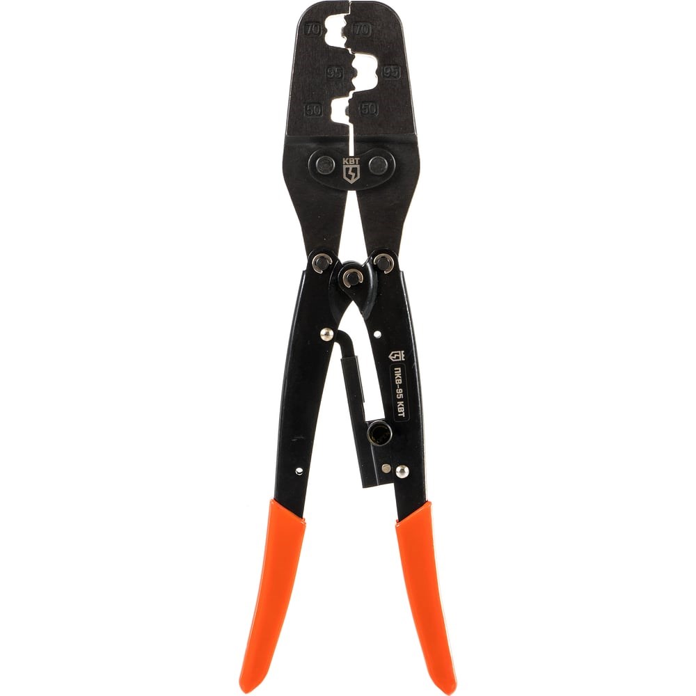 Пресс-клещи КВТ ПКВ-95 74597 является профессиональным инструментом для опрессовки одинарных и двойных втулочных наконечников на многожильные медные провода. Данная модель работает с тремя типоразмерами НШВИ, НШВ: 50, 70 и 95 мм². За счет храпового механизма осуществляется полный цикл опрессовки.