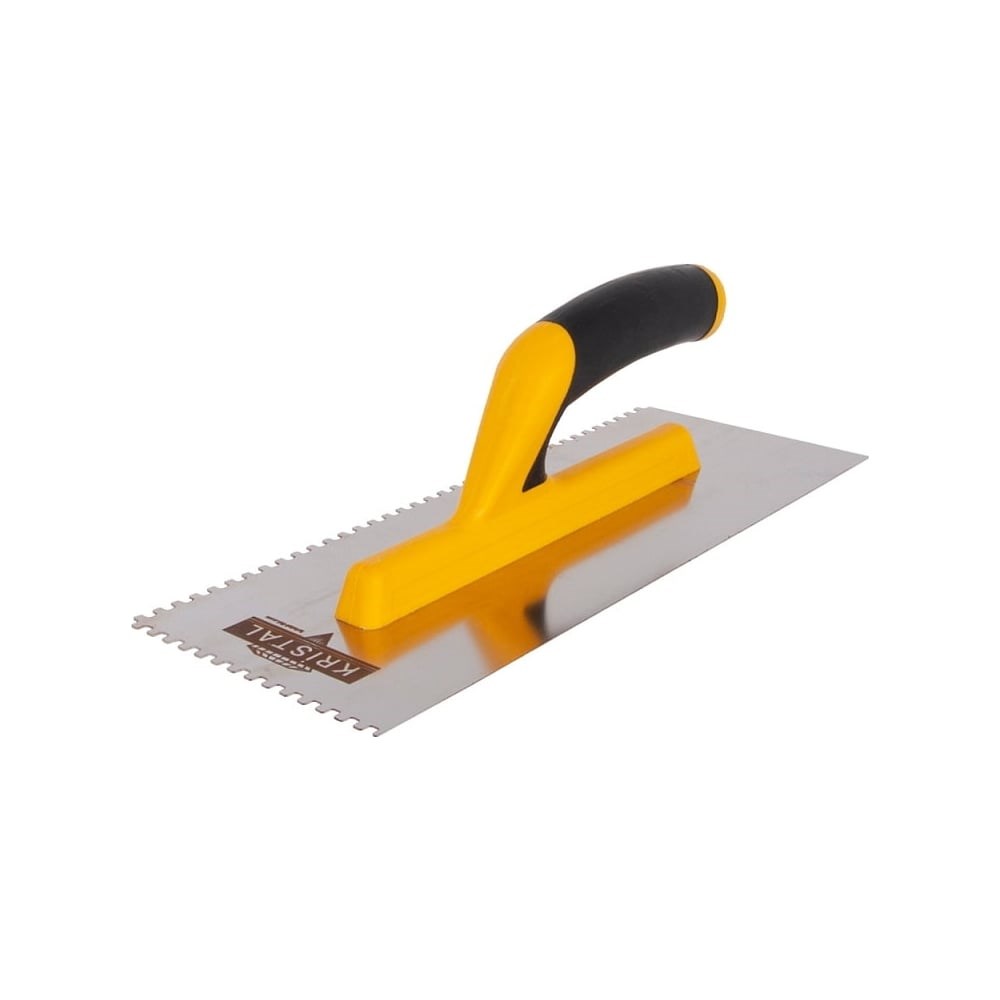 Профессиональная гребёнка KRISTAL 300х120мм, зуб 4х4 нержавейка 36535 предназначена для равномерного нанесения и распределения клеевого раствора на поверхность во время отделочных работ. Ручка выполнена из высокопрочного пластика с прорезиненной рукояткой, что обеспечивает надежный захват. Гребенка используется для работы с небольшими кафельными плитками до 12х12 см.