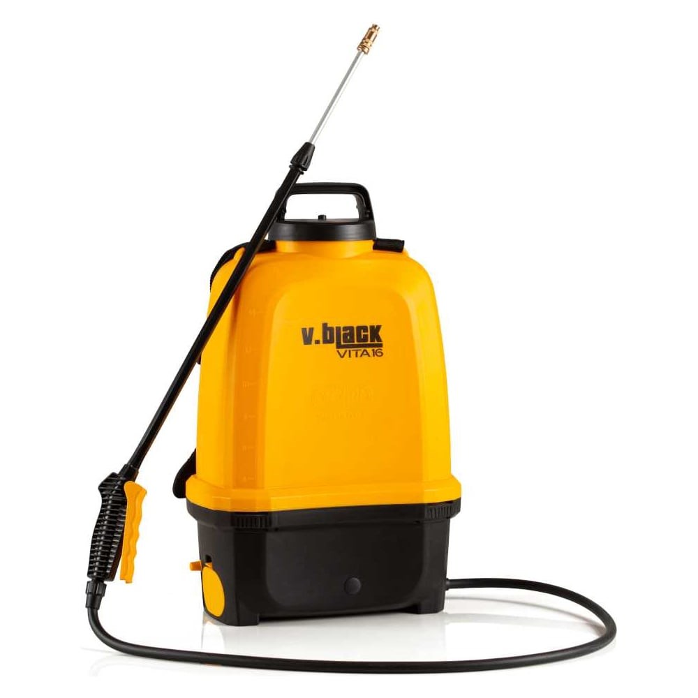 Аккумуляторный ранцевый опрыскиватель Volpi originale v.black vita 16 23VBE16 - профессиональный модель с рабочим давлением 5 бар, телескопической штангой из стекловолокна и алюминия (70-125 см), баком 16 л и уплотнениями NBR.Опрыскиватель спроектирован и произведен в Италии. Идеален для химической обработки растений от болезней и вредителей, распыления гербицидов и удобрений, дезинсекции и дезинфекции. Благодаря полному отсутствию выхлопных газов может применяться для обработки растений в закрытых помещениях, таких как: теплицы, парники и оранжереи.Практичный электронный регулятор давления (0-5 бар) позволяет дозировать подачу жидкости.Широкие мягкие регулируемые лямки и нагрудный ремень значительно облегчают работу, оптимально распределяя нагрузку между плечами, грудной клеткой и спиной. Имеется мягкое уплотнение для спины.