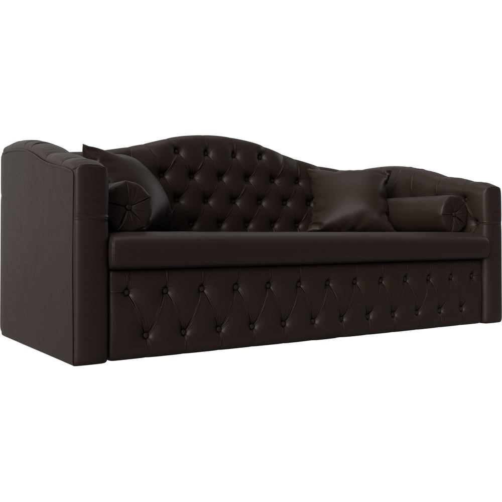«Мечта» – современный прямой диван с механизмом раскладки «дельфин» станет прекрасным приобретением и дополнением интерьера жилой комнаты, где он не займет много места. Спинка модели и царга украшены элегантной каретной стяжкой, мягкие подлокотники имеют изогнутый и элегантный вид. Две небольшие приспинные подушки обеспечат удобство и комфорт. Дизайн дивана дополнен двумя декоративными подушками в форме валика. Конструкция дивана «Мечта» надежна, функциональна, легко трансформируется в полутороспальную кровать.