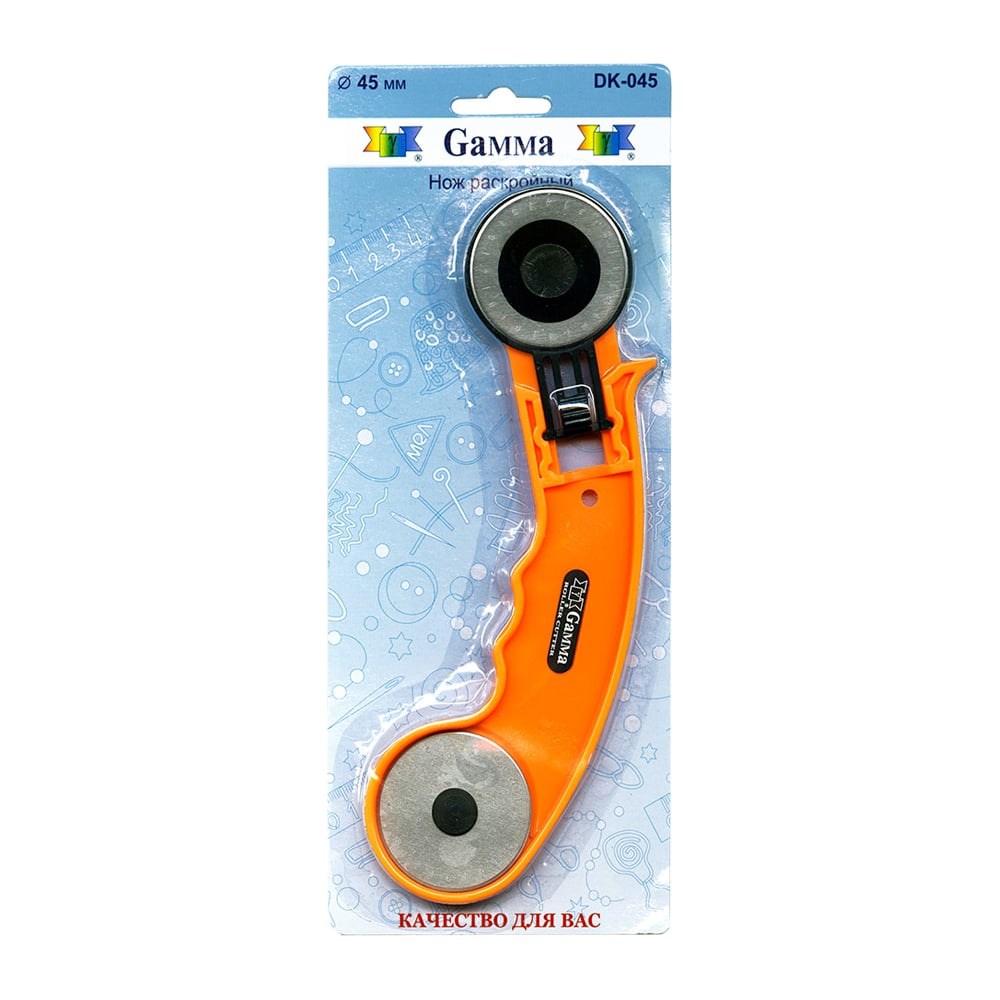Нож раскройный (d=45 мм; пластик, металл) Gamma 109922 подходит для всех видов тканей, кожи, замши. Применяется для точного раскроя 4-6 слоев материала. Можно использовать при моделировании деталей для пэчворка. Внимание, изображение товара может отличаться от реального!