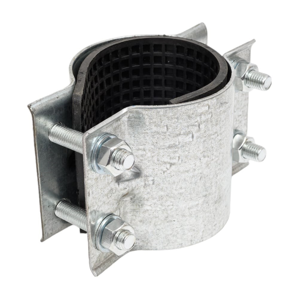 Хомут ремонтный оцинкованный 2-составной АТКА предназначен для устранения течи из трещин и свищей, образующихся на трубопроводах поврежденных коррозией или вследствие механических повреждений Хомут состоит из двух полумуфт, листового уплотнения и крепежного комплекта. Полумуфты изготавливаются методом штамповки из листовой стали. Для прочности полумуфты имеют ребра жесткости. Для DN 15- DN 40 уплотнение изготавливается из гладкой резины, для DN50 – DN600 применяется рифленая резина. С помощью хомутов ремонт трубопроводов может осуществляется без отключения давления в трубе, Испытание давлением и запуск трубопровода возможен сразу после монтажа. Монтаж производится без специального оборудования и инструмента в любом пространственном положении на наружных и подземных трубопроводах в любых погодных условиях. Хомуты имеют длительный срок службы и возможность многоразового использования. Температура рабочей среды от -20 до +110 °C. Полумуфта: оцинкованная сталь Ст20 или оцинкованная сталь Ст20 с кадмированием Уплотнение: EPDM Болт: оцинкованная сталь Ст20 или оцинкованная сталь Ст20 с кадмированием Гайка: оцинкованная сталь Ст20 или оцинкованная сталь Ст20 с кадмированием Шайба: оцинкованная сталь Ст20 или оцинкованная сталь Ст20 с кадмированием