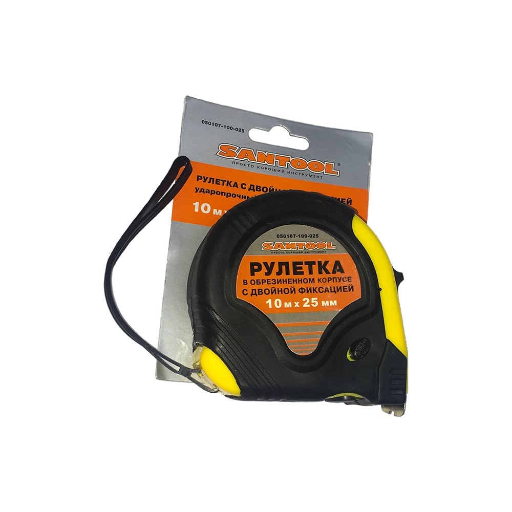 Рулетка SANTOOL обрезиненный корпус, с двойной фиксацией, 10м х25мм 050107-100-025