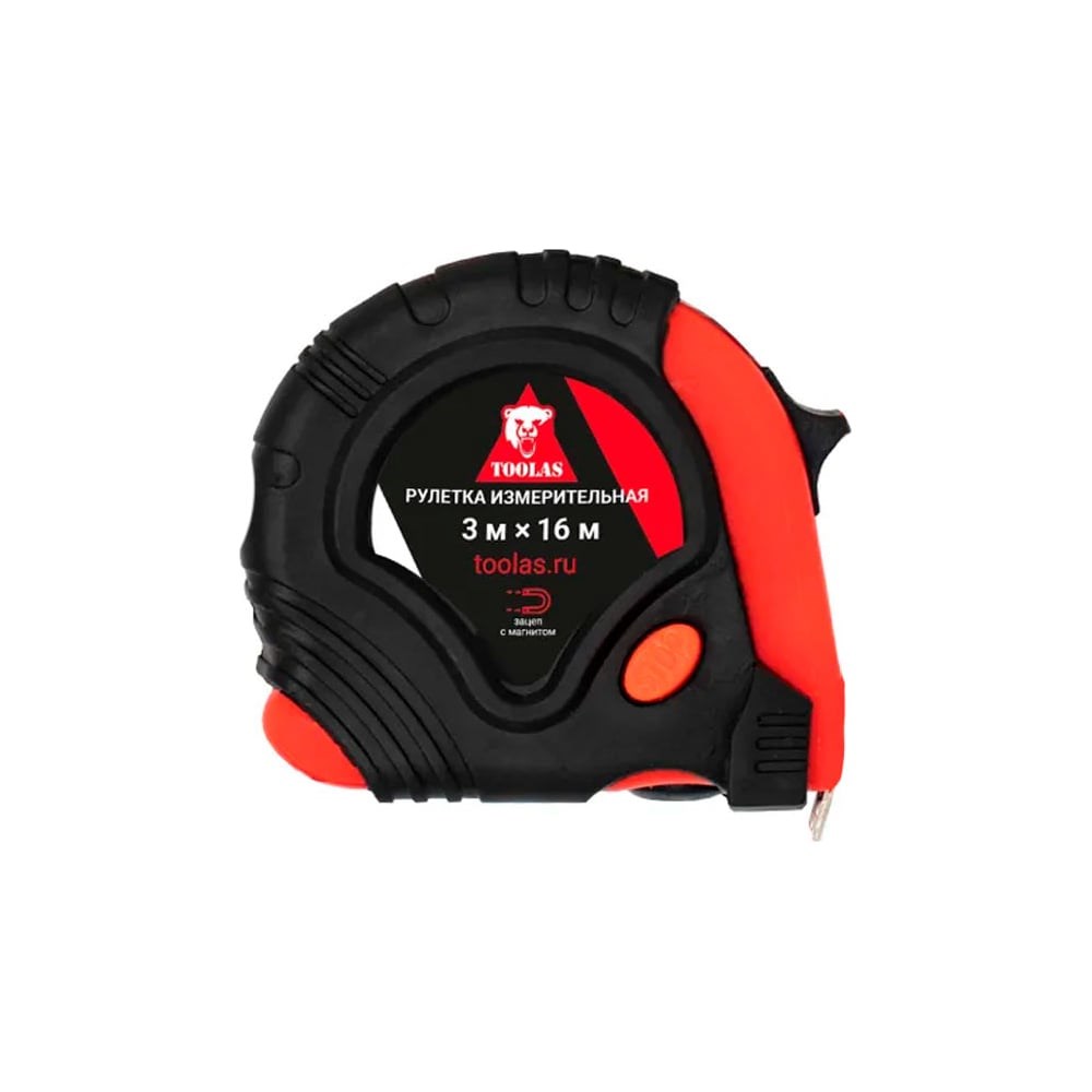 Рулетка TOOLAS с прорезиненным корпусом предназначена для высокоточного измерения размеров каких-либо линейных объектов. Решает любые бытовые, строительные и геодезические задачи. Полотно длиной 3 метра и шириной 16 мм. Ребристая кнопка надежно фиксирует необходимую длину. Корпус из ударопрочного АВС пластика оснащен шнурком для подвеса. При длительном пользовании числовая разметка не стирается и сохраняет свой изначальный вид. Магнитный зацеп позволяет пользоваться рулеткой одной рукой.