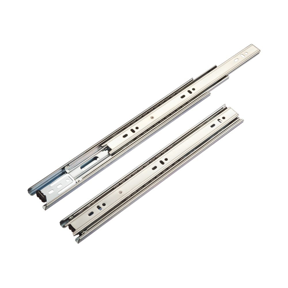 Стальные шариковые направляющие DM45-350W полного, плавного и бесшумного выдвижения - это надежная и долговечная фурнитура. Направляющие обладают высокой несущей способностью, бесшумны и легки в установке. Максимальная нагрузка - 30 кг. Цвет направляющих - сталь, длина - 350 мм.