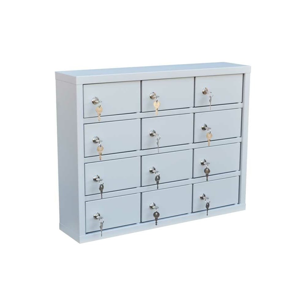 Шкаф для хранения мобильных телефонов.Габаритные размеры:Высота: 510 ммШирина: 650 ммГлубина: 150 ммПоставляется в собранном виде (цельносварная конструкция).Ящик на 12-ть телефонов, отдельно закрывающимся дверцами, подойдет в школе, на работе, в офисе, на производстве и так далее, рассчитан на двенадцать отделений.Ячейки для хранения сотовых / мобильных телефонов имеют достаточный размер, чтобы поместить современный смартфон любого размера.12 запираемых ячеек. На ящике с ячейками для телефонов врезной замок. У каждого шкафчика свой комплект замка и двух ключей. Ключи и замок пронумерованы, чтобы понять какому замку соответствует какой ключ.Внутренние размеры одного отделенияГлубина: 115 ммШирина: 170 ммВысота: 100 мм.Ячейки шкафа для телефонов имеют прочную конструкцию. Конструкция цельносварная.Сам ящик для сотовых телефонов выполнен из стали. Двенадцать запираемых ячеек. На задней стенке шкафа имеется 4 отверстия d 6.5мм для крепления шкафа к стене. Крепление шкафа к стене обязательно. Вид поставки собранный.Окрашен порошковой краской светло-серого цвета, RAL 7035.Отличное решение для хранения мобильных телефонов на работе, школе, офисе, в любом месте, где надо сдать или оставить на сохранение мобильный телефон. Подойдет для хранения различного мелкого товара (наушники, зарядные устройства, USB-кабели и многое другое). Если вы искали органайзер, ящик, шкаф, мини сейф, то возможно вас заинтересует данный товар - металлический шкаф для хранения мобильных телефонов.