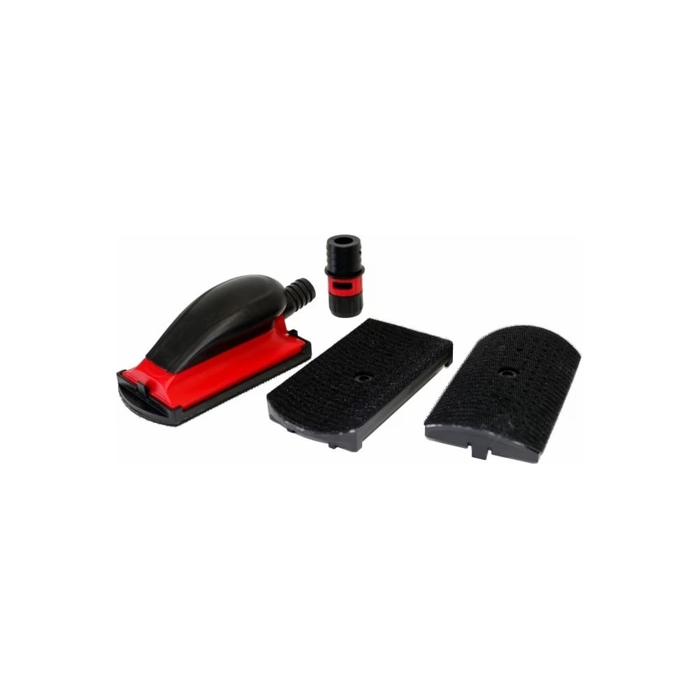 Шлифовальный блок предназначен для ручного шлифования различных поверхностей. Шлифовальный лист крепится при помощи липучки. Подключается с помощью шланга к системе пылеудаления. Набор подходит для шлифования выпуклых и вогнутых поверхностей. Шлифки изготовлены из высококачественных материалов с выверенной геометрией, которые идеально подходят для профессионального кузовного ремонта автомобилей. Блок очень легкий и имеет нескользящую ручку с удобным хватом.