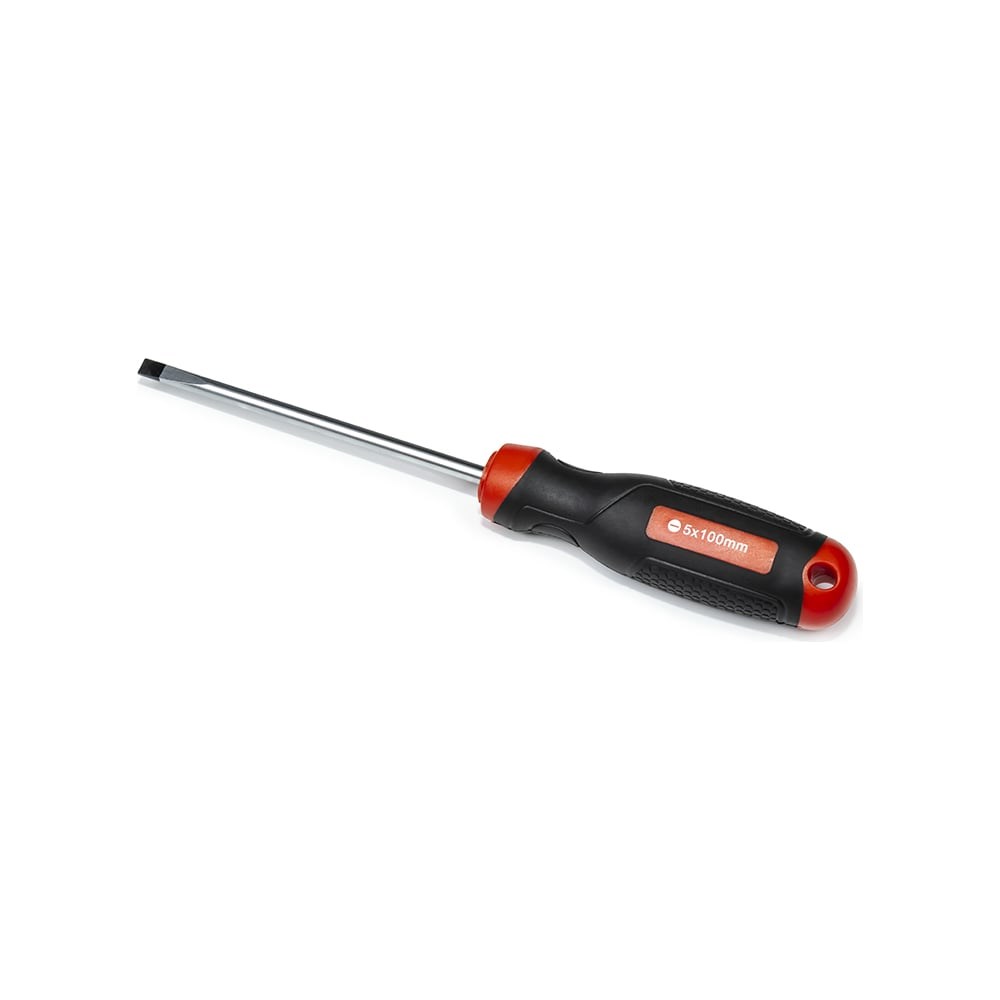 Шлицевая отвертка предназначена для завинчивания и отвинчивания крепежных элементов вручную, имеющих внутренний рабочий профиль. Находит применение на станциях технического обслуживания автомобилей (СТО), в автосервисах и автомастерских, для домашнего использования или профессиональных ремонтно-монтажных работ. Отвертка изготовлена из высококачественной легированной хромованадиевой инструментальной стали, с последующей закалкой до твердости в пределах 46-48HRC, что соответствует всем требования нормативной документации. Наконечник проходит дополнительную термическую обработку с целью получения оптимального сочетания твердости и пластичности. Стержень имеет глубокую посадку с крепление в двух точках, что исключает проворачивание стержня в рукояти. Отвертка снабжена двухкомпонентной эргономичной рукоятью. Рукоять имеет специальное отверстие, поэтому отвертку можно с легкостью разместить на вертикальной поверхности или установить темляк. Благодаря высококачественным компонентам рукоять имеют высокую стойкость к агрессивным средам. Защиту от коррозии обеспечивает специальное хромоникелевое покрытие.