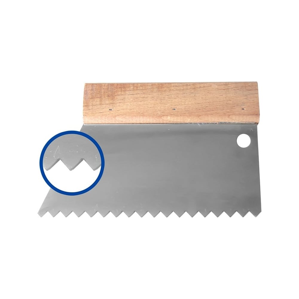 Шпатель нержавеющая сталь НАШ ИНСТРУМЕНТ 180 мм S4 зуб 10х5мм для клея /Р/ 020614-001 подойдет для нанесения на поверхность различных видов клея. Инструмент оснащен удобной рукояткой, которая упрощает удержание шпателя.