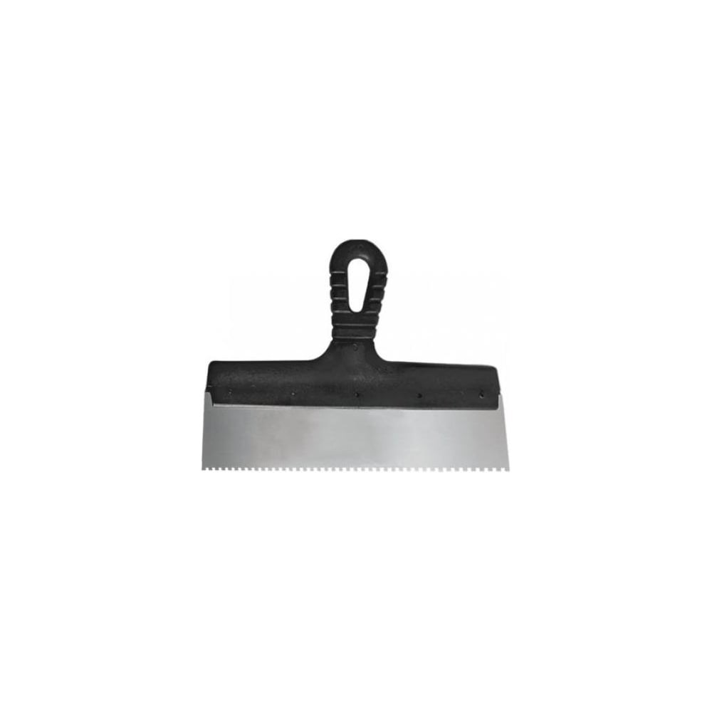 Шпатель из нержавеющей стали СИБРТЕХ 85470 активно применяется при отделке помещений, служит для эффективного нанесения различных строительных смесей, например, при выкладывании плитки и пр. Инструментом легко пользоваться за счет облегченной ручки из ударопрочной пластмассы, которая обладает удобной изогнутой формой и рифленой поверхностью. Рабочая часть выполнена из нержавеющей стали и имеет квадратные зубья.