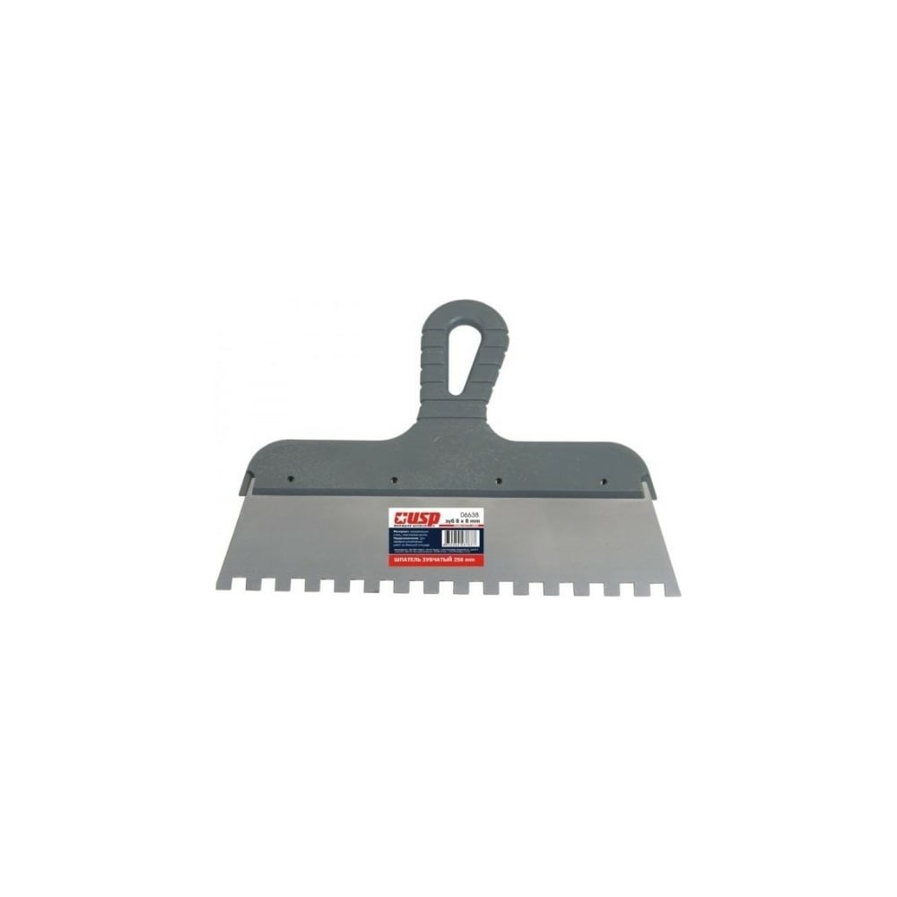 Шпатель из нержавеющей стали с пластиковой ручкой USP 200 мм, зуб 8 мм 06628