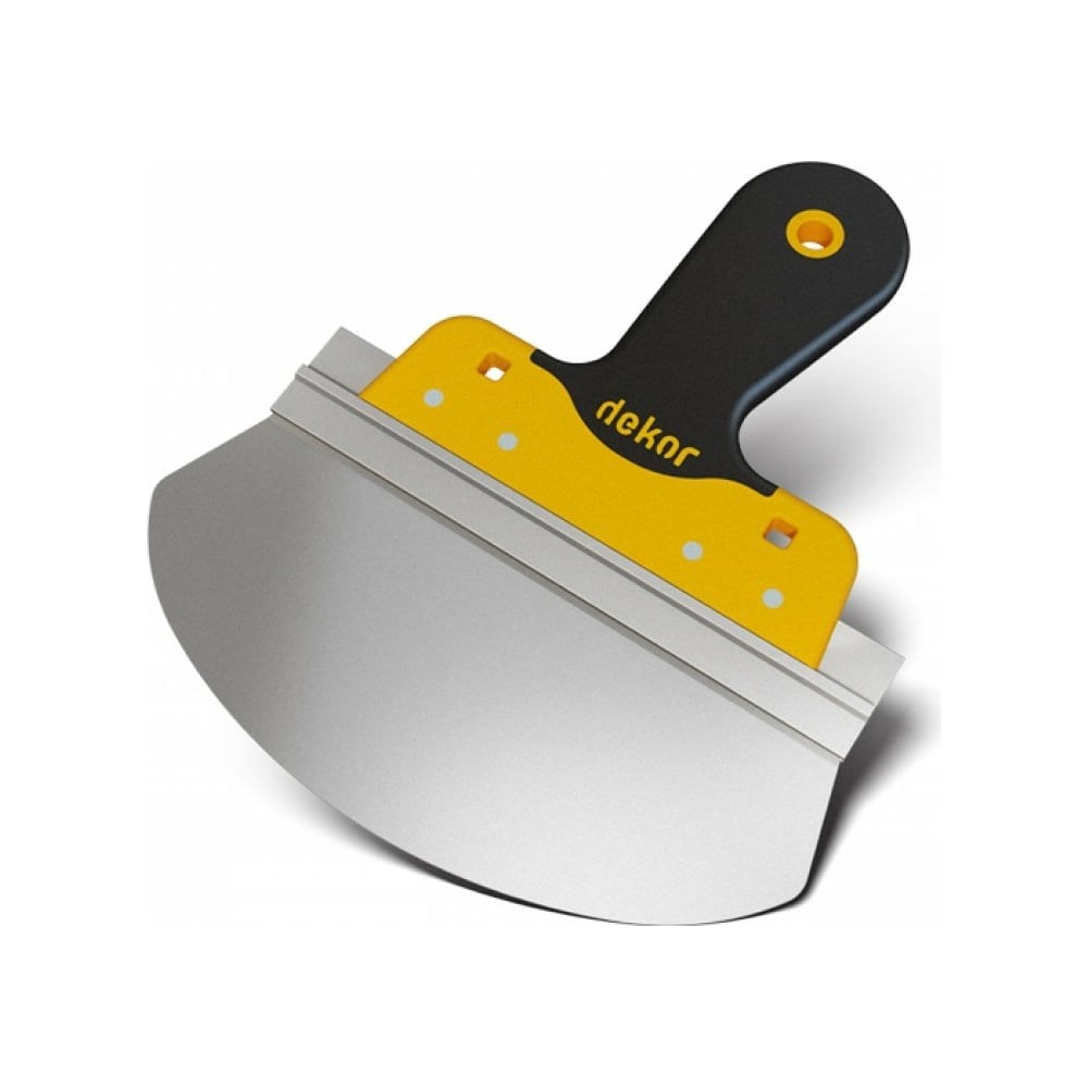 Шпатлевочная лопатка DEKOR HASSAN для ведра 20см, пластиковая ручка, DEKOR 1941 имеет специальную форму, благодаря которой можно легко зачерпывать смесь из стандартного круглого ведра. Модель имеет небольшую высоту, что оптимально для ведер до 10 литров. Рукоять изготовлена из нескользящего материала. Имеется отверстие для подвешивания. Полотно расклепано в рукояти.