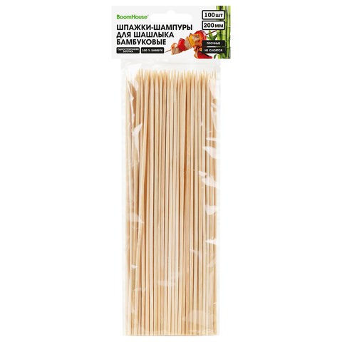 Шпажки-шампуры для шашлыка бамбуковые 200 мм, 100 шт., BOOMHOUSE (БУМХАУС), 701958